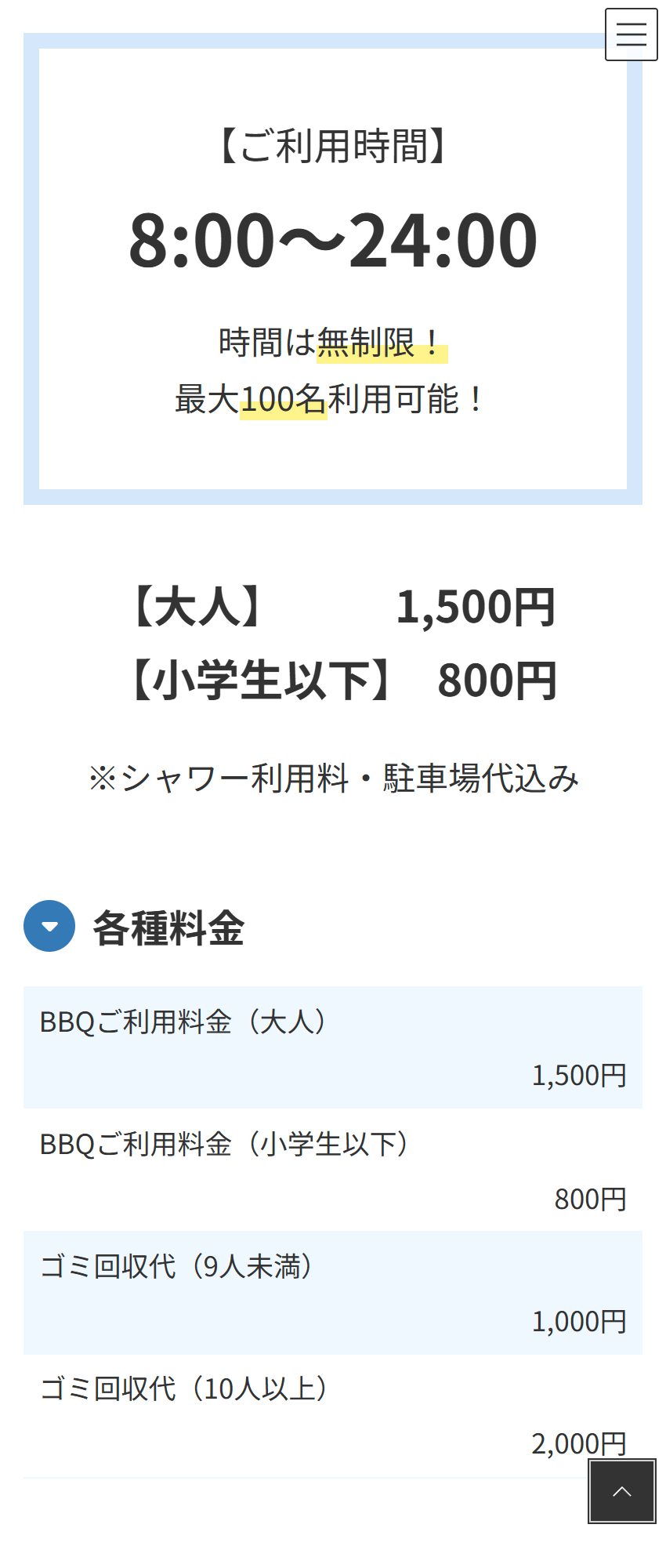 また最大の課題であった「電話の問い合わせ対応に追われる」という状況を改善するため、利用料金や営業時間といった重要情報を、スマホからでも視覚的にパッと見て分かる配置へと徹底的に整理しました。